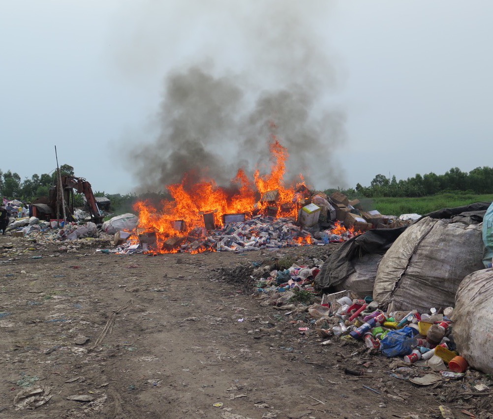 Hậu Giang tổ chức tiêu hủy hàng hóa là thuốc lá điếu nhập lậu và tang vật vi phạm hành chính bị tịch thu buộc tiêu hủy.