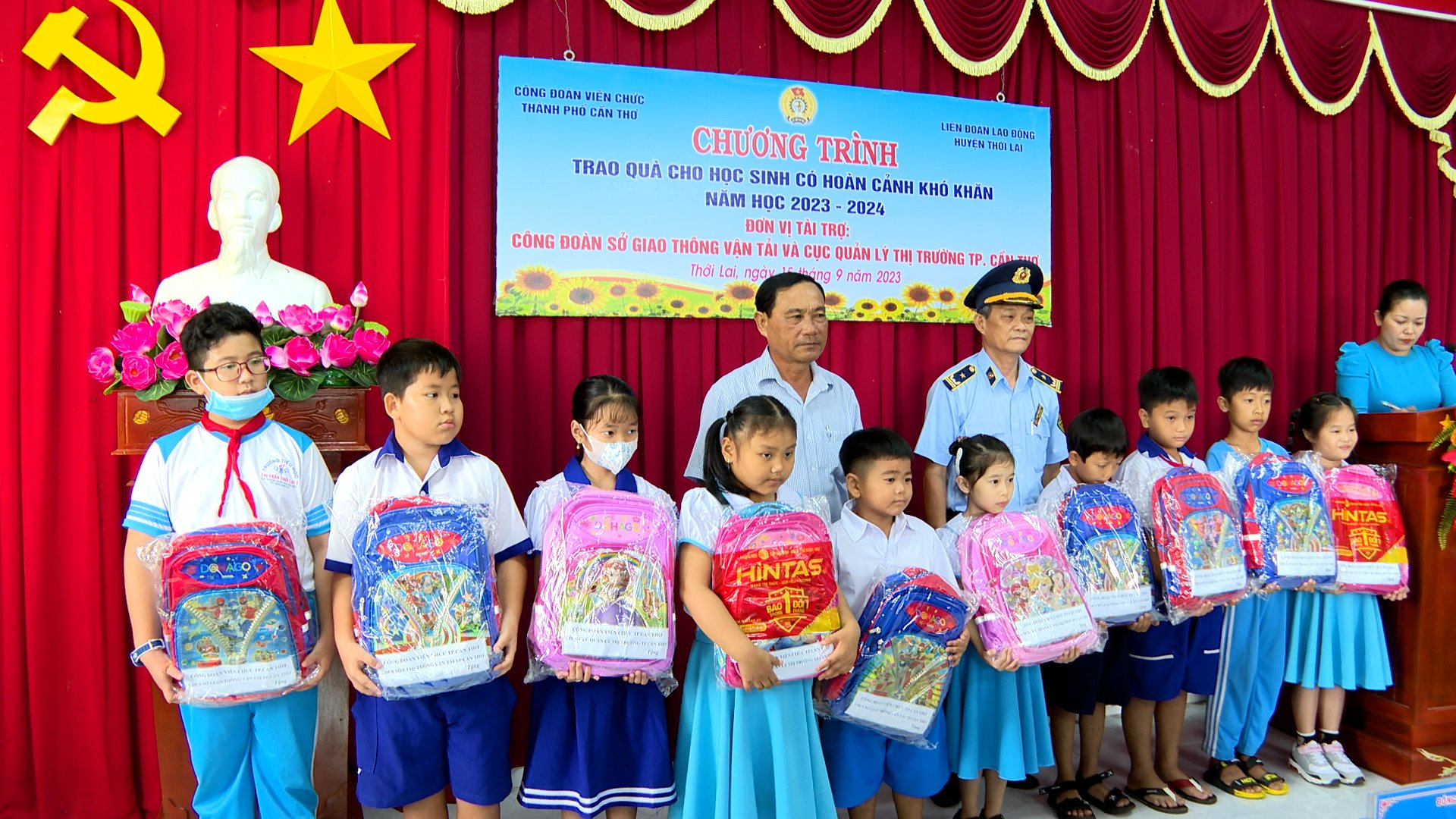 Tại buổi trao quà có sự góp mặt của đại diện Ban Chấp hành Công đoàn viên chức thành phố Cần Thơ, lãnh đạo chính quyền địa phương cùng dự, đã trao 50 phần quà cho học sinh có hoàn cảnh khó khăn tại huyện Thới Lai.