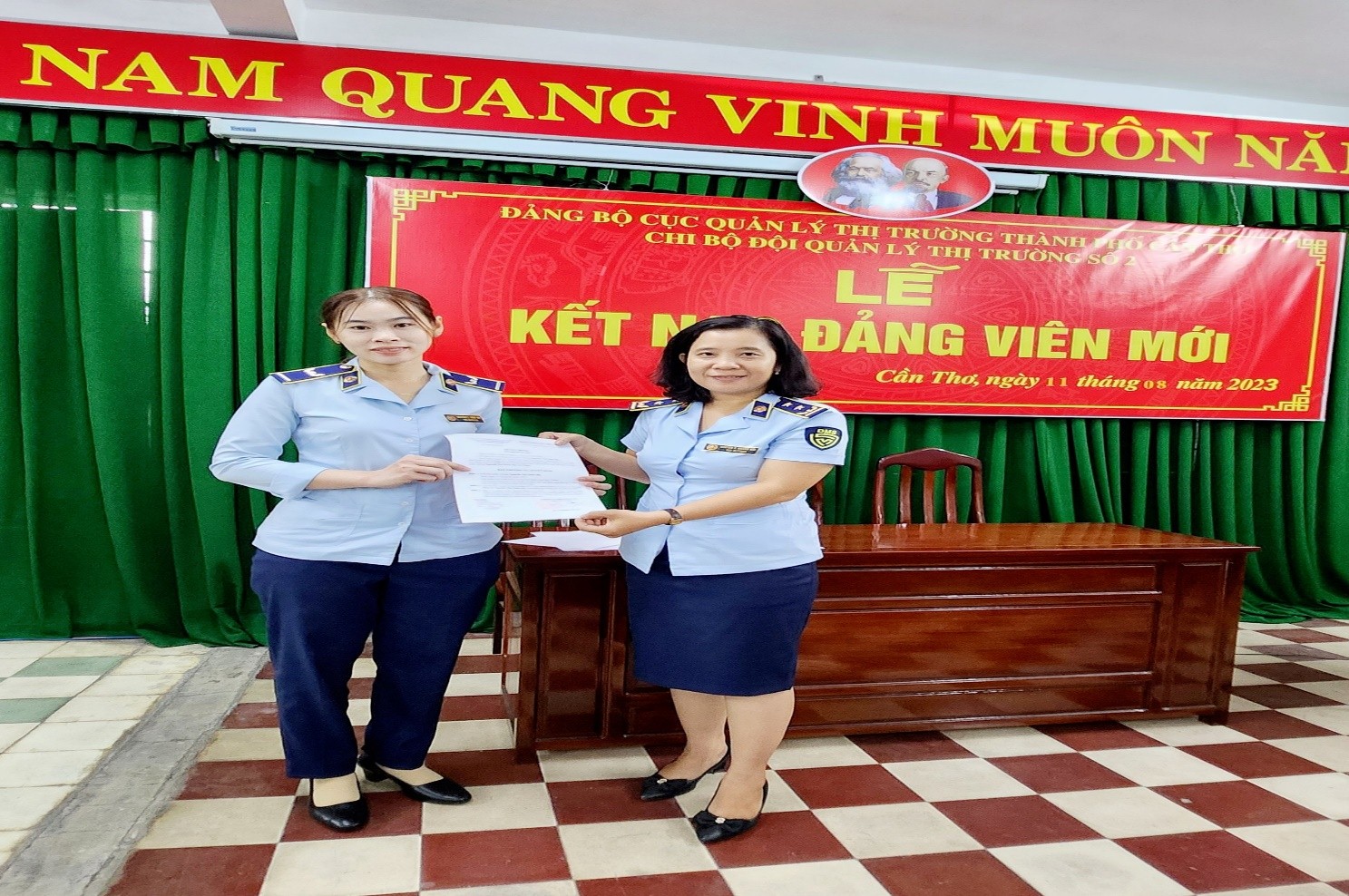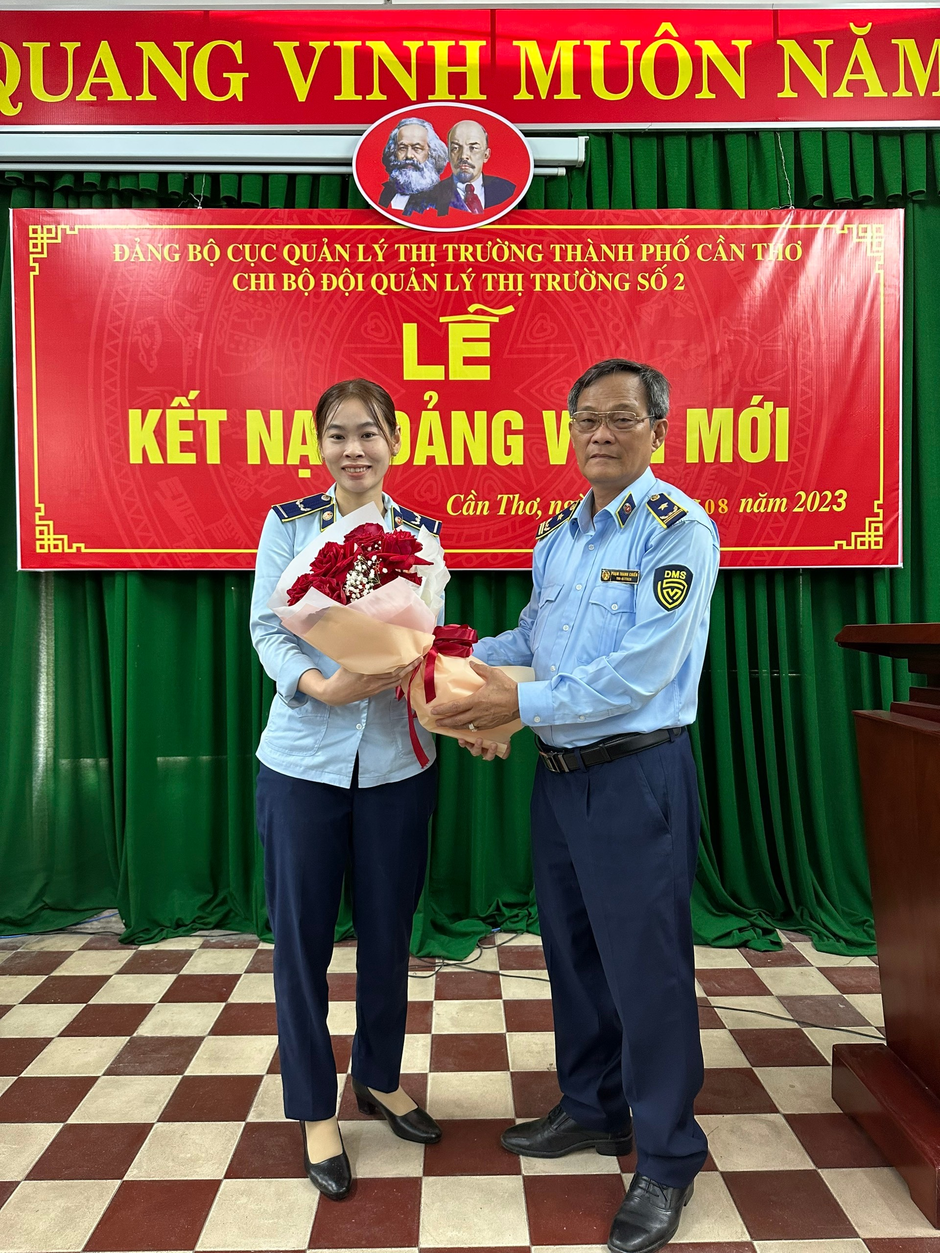 Căn cứ Quyết định số 768-QĐ/ĐUK ngày 01 tháng 8 năm 2023 của Đảng ủy Khối Cơ Quan Dân Chính Đảng thành phố Cần Thơ về kết nạp đảng viên; được sự chấp thuận của Đảng ủy Cục Quản lý thị trường thành phố Cần Thơ, ngày 11/8/2023 Chi bộ Đội Quản lý thị trường số 2 tổ chức Lễ kết nạp đồng chí Nguyễn Thị Thùy Mỵ vào Đảng theo đúng thủ tục quy định.