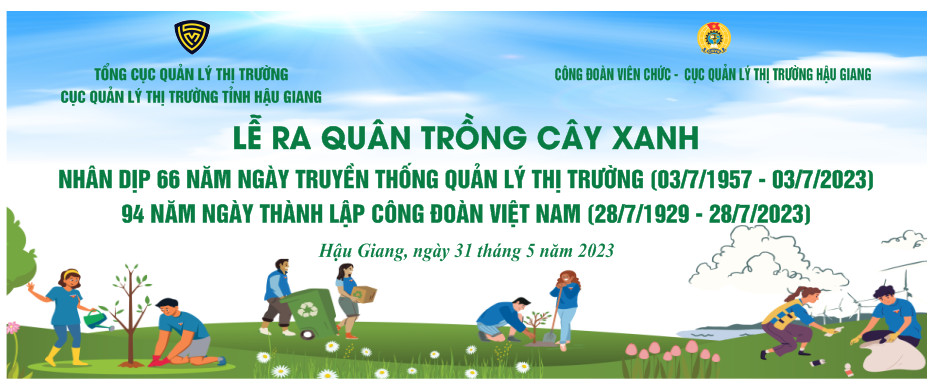 Hưởng ứng “Tuần lễ Quốc gia phòng, chống thiên tai năm 2023”, nhân dịp kỷ niệm 66 năm ngày truyền thống Quản lý thị trường (03/7/1957-03/7/2023), 94 năm ngày thành lập Công đoàn Việt Nam (28/7/1929-28/7/2023) Cục Quản lý thị trường tỉnh Hậu Giang phối hợp cùng Ban Chỉ huy Phòng, chống thiên tai và Tìm kiếm cứu nạn tỉnh Hậu Giang và UBND huyện Châu Thành A trồng 5.100 cây xanh.