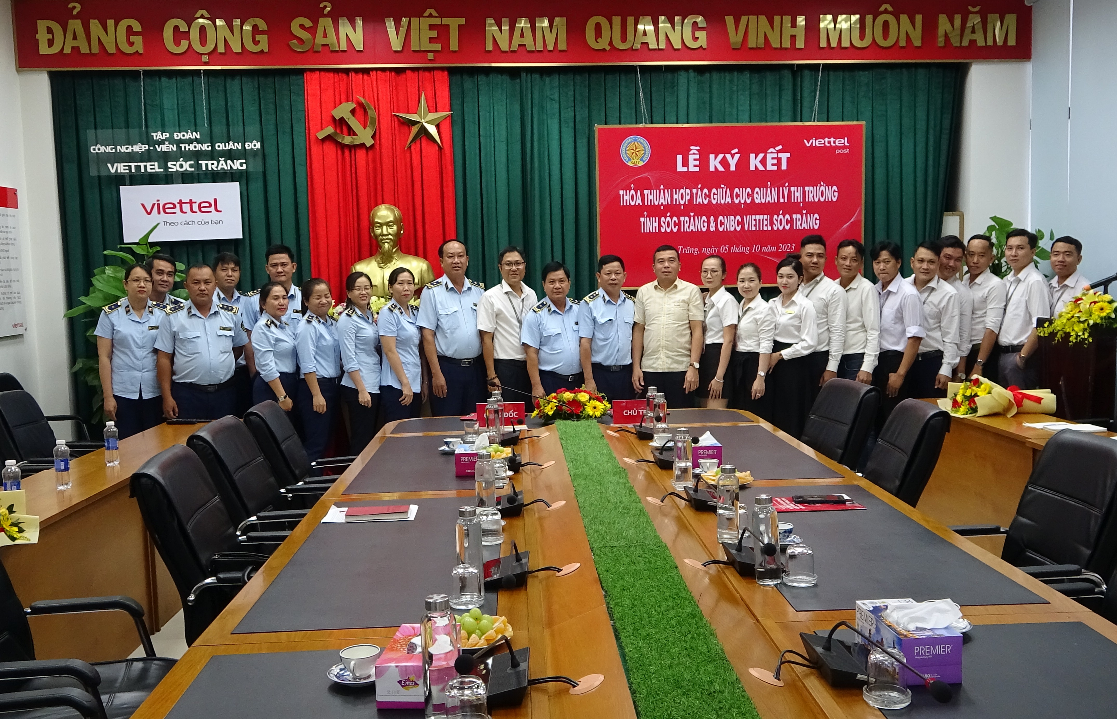 Chiều ngày 05/10/2023, tại trụ sở Chi nhánh bưu chính Viettel Sóc Trăng, Cục Quản lý thị trường tỉnh Sóc Trăng và Chi nhánh Bưu chính Viettel Sóc trăng ký kết Thỏa thuận hợp tác trong việc kiểm tra và xử lý đối với hàng hóa vi phạm quy định của pháp luật gửi qua đường bưu chính Viettel
