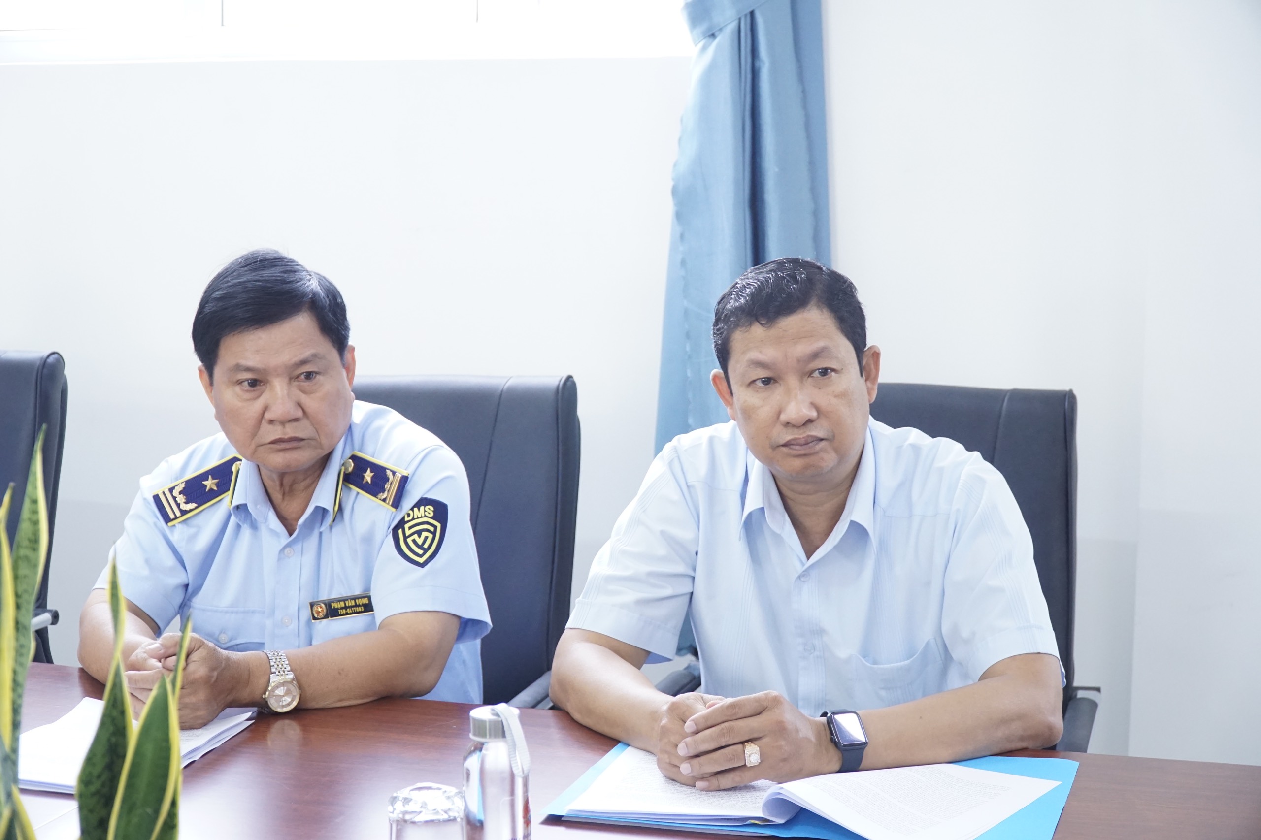 Đến dự có đồng chí Cao Minh Hường - Phó Bí thư thường trực Huyện ủy Mỹ Xuyên (phải) và Đồng chí Phạm Văn Vọng - Phó Cục trưởng Cục Quản lý thị trường tỉnh Sóc Trăng (trái)