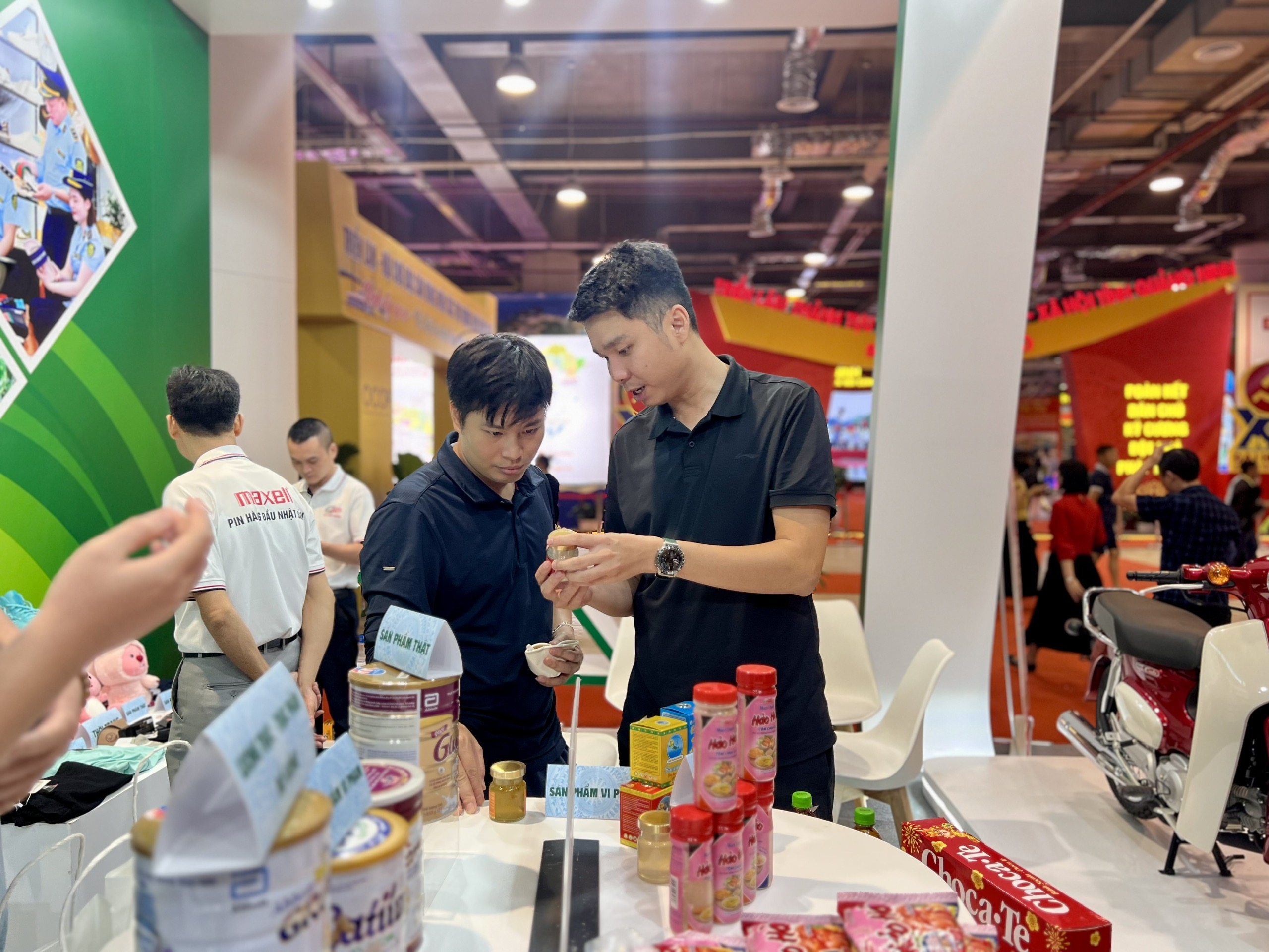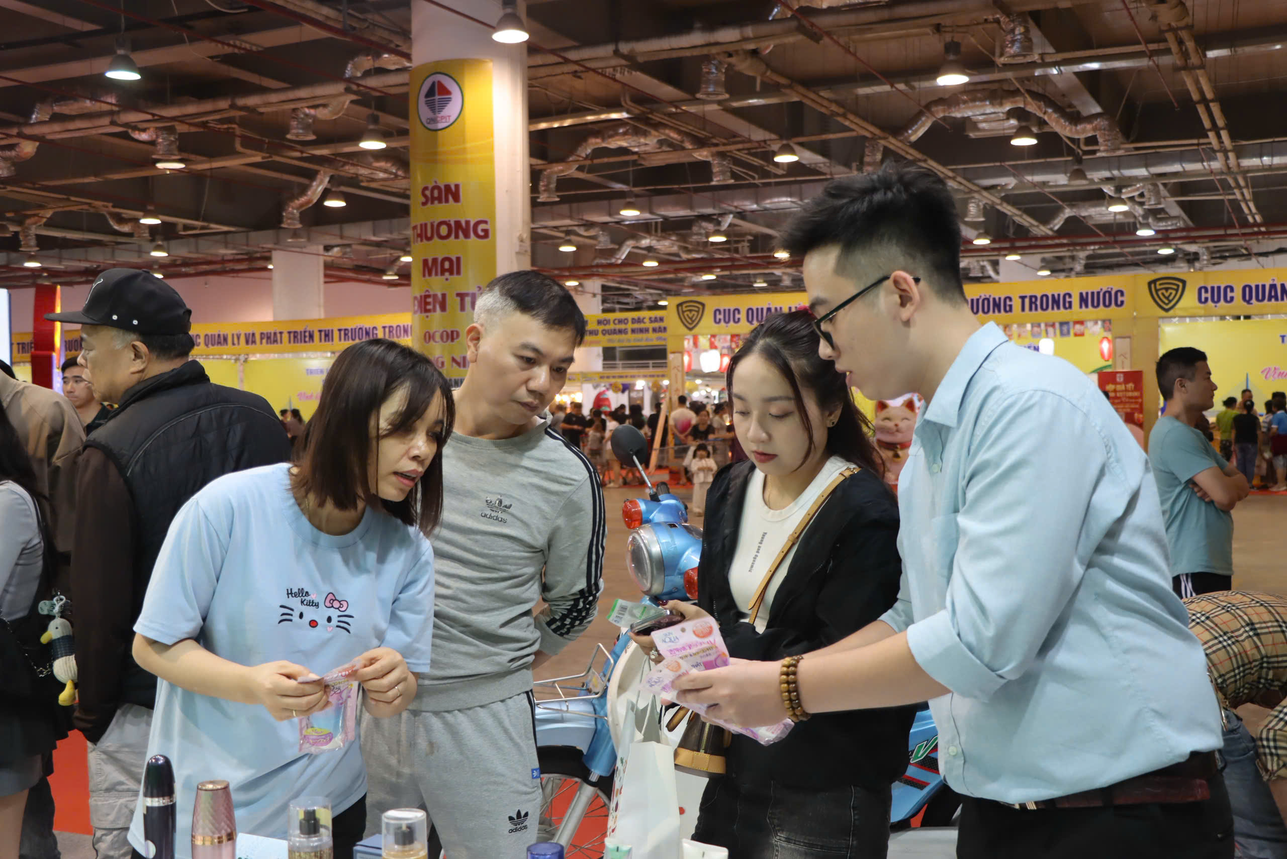 Tại gian hàng, người dân, khách tham quan đã được công chức Cục Quản lý và Phát triển thị trường trong nước hướng dẫn, giúp nhận diện, phân biệt sản phẩm