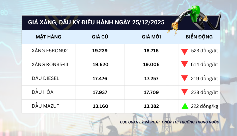 Giá xăng, dầu trong kì điều hành 25/12